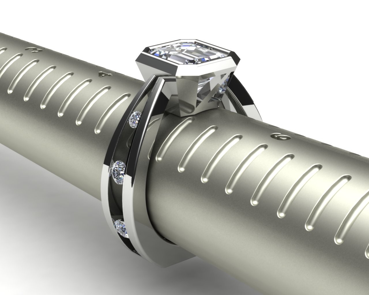 The diamond, elevated in a striking modern setting, seems to rise effortlessly from the band, catching the light with every movement. Subtle curves and clean lines create harmony between strength and softness, making the piece as symbolic as it is stunning.